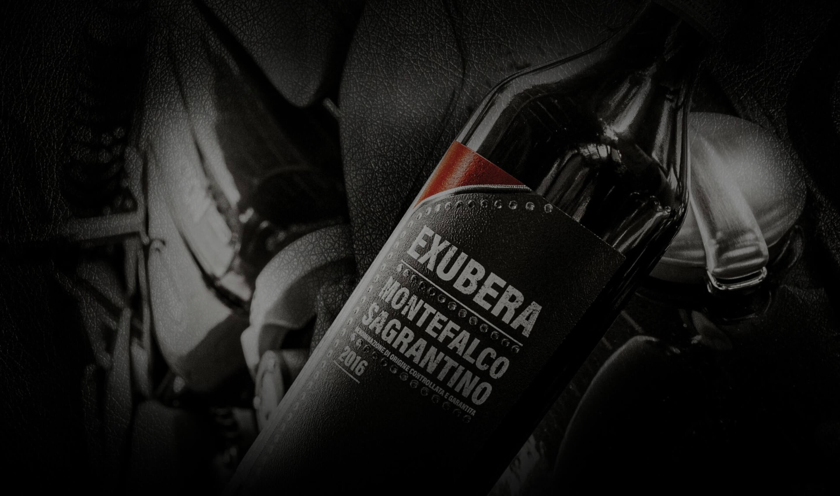 Exubera si sprigiona come un riff di basso all’apertura della bottiglia e si scatena con tutta la sua forza mentre il Sagrantino, color rubino intenso, gira nel bicchiere.